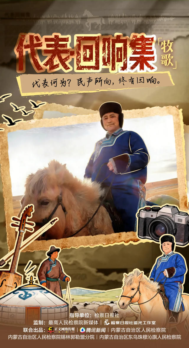 風吹草原,帶來無邊的綠浪,也帶來牧民們的歌聲。那些牧歌訴說著草原的期盼。代表何為?讓民聲所向,終有回響。檢察何為?助聲聲回響,落回草原,成就年年綠野蒼蒼?!?/p>