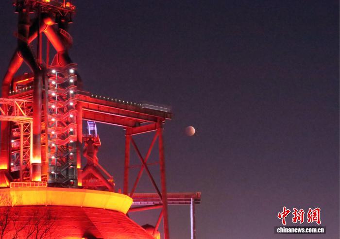 3月3日,北京首鋼園,元宵節(jié)的月亮帶食升起。中新網(wǎng)記者 孫自法 攝