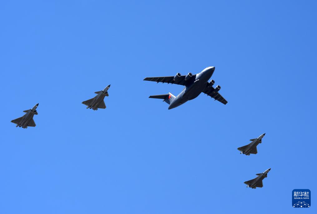 4月22日,第十三批在韓中國(guó)人民志愿軍烈士遺骸回國(guó)。這是接迎第十三批在韓中國(guó)人民志愿軍烈士遺骸回國(guó)的空軍運(yùn)-20B飛抵沈陽(yáng),4架殲-20戰(zhàn)機(jī)護(hù)航。新華社記者 李鋼 攝