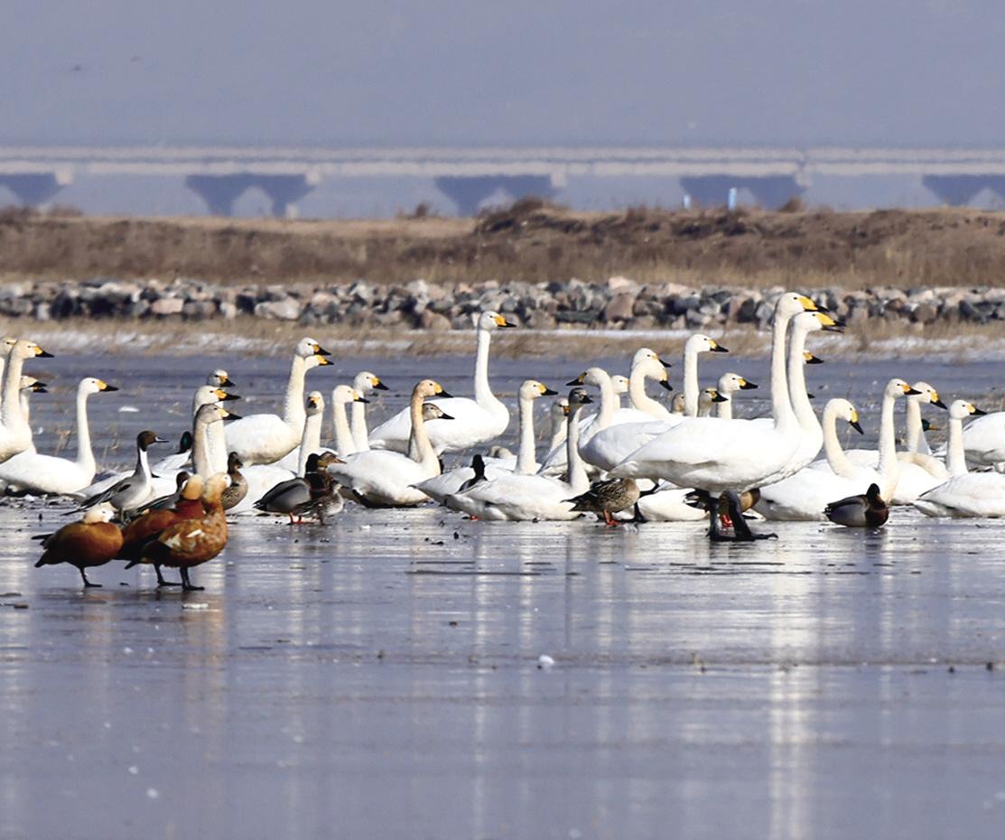 天氣日漸回暖,大批北歸候鳥飛臨黃河“幾字彎”逗留棲息。新華社記者 賈立君 攝