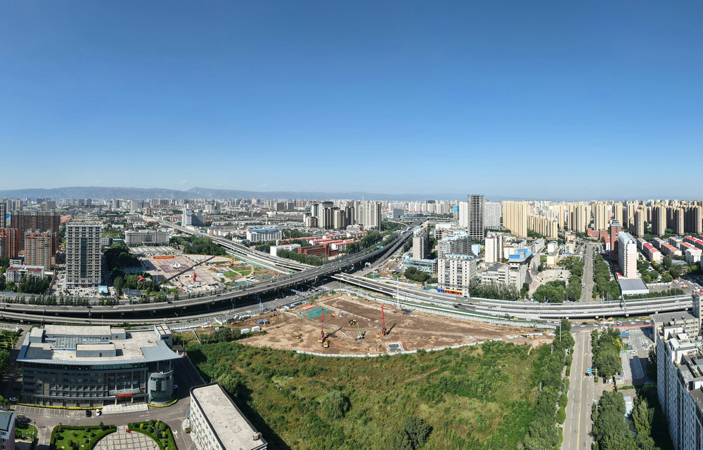 9月6日,呼和浩特昭烏達(dá)路與南二環(huán)互通立交工程正在施工。