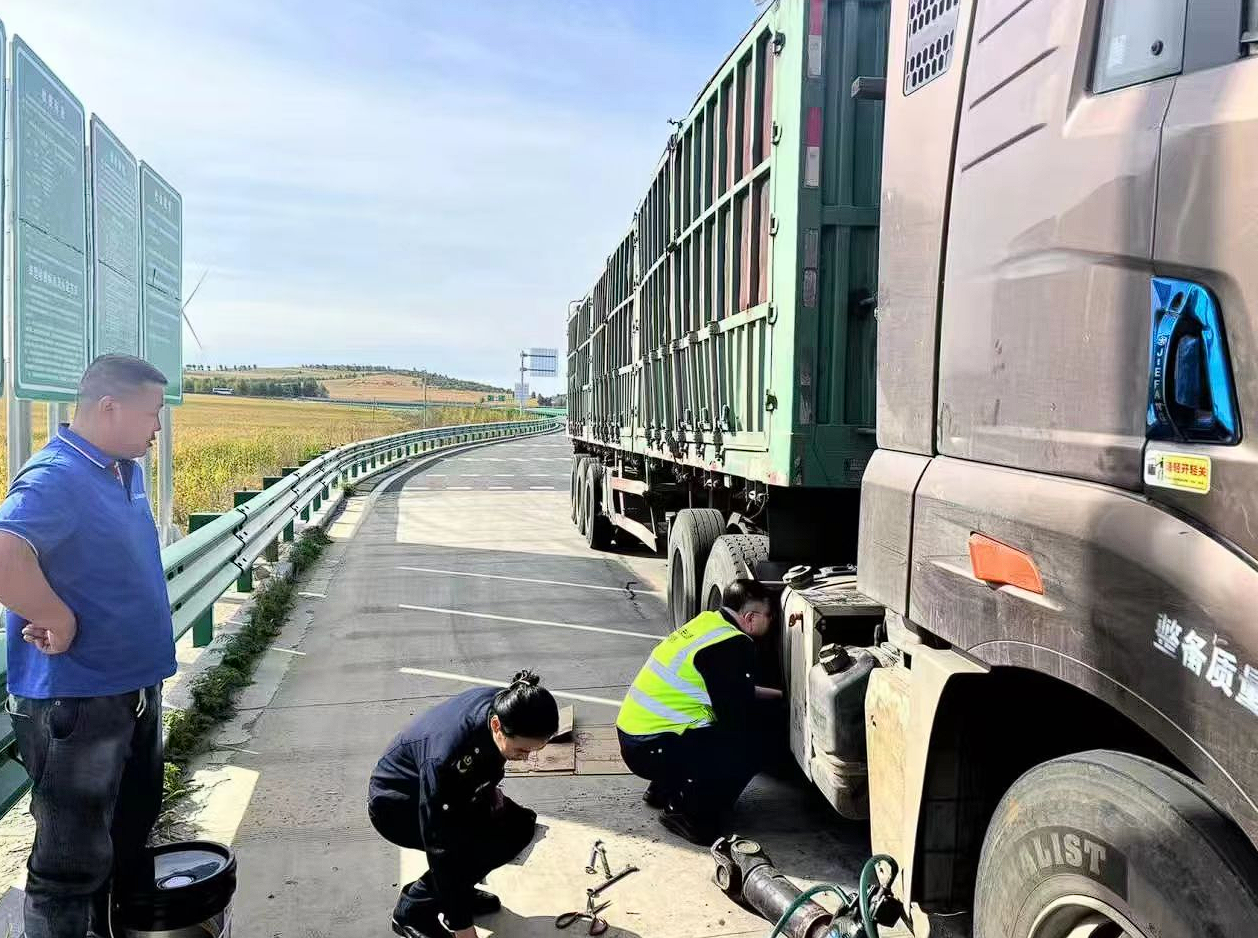 工作人員為大車司機(jī)提供幫助