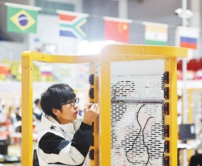 在江蘇省南通市,參賽選手在2023年金磚國家職業(yè)技能大賽中國分賽區(qū)物聯(lián)網(wǎng)賽項(xiàng)國際總決賽中比拼。徐培欽攝(人民視覺)