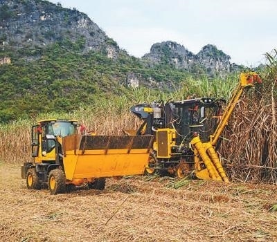 位于廣西崇左的東亞糖業(yè)原料蔗基地正在進行機械化收割。東亞糖業(yè)集團供圖