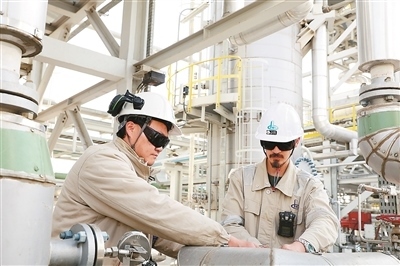 伊拉克哈法亞天然氣處理廠項目由中國石油工程建設有限公司承建,主要功能是收集和處理哈法亞油田3個中心油氣處理廠的伴生氣和凝析液,有效減少該地區(qū)油田伴生氣放空燃燒,從而保護環(huán)境。圖為中方技術人員帶領當地員工對現(xiàn)場調節(jié)閥進行檢測。