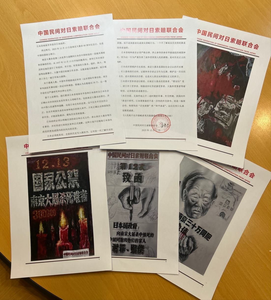 南京大屠殺88周年之際,中國民間對日索賠聯(lián)合會通過日本駐華大使館,致信日本政府及首相高市早苗,要求就南京大屠殺的罪行向中國人民謝罪并賠償。