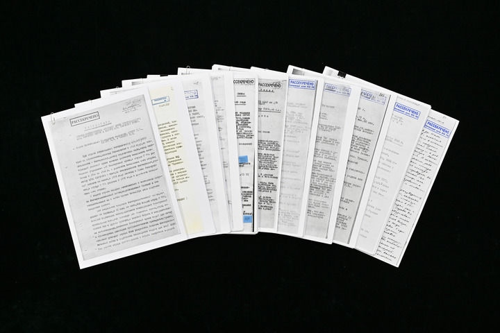 2025年12月13日,第十二個南京大屠殺死難者國家公祭日,中央檔案館公布一批俄羅斯轉交我方的蘇聯審訊日本731部隊的解密檔案材料。一些偵訊記錄系首次公開,受審戰(zhàn)犯對其違反國際公約、準備和實施細菌戰(zhàn)的罪行供認不諱。這是解密的檔案。新華社記者 李鑫 攝