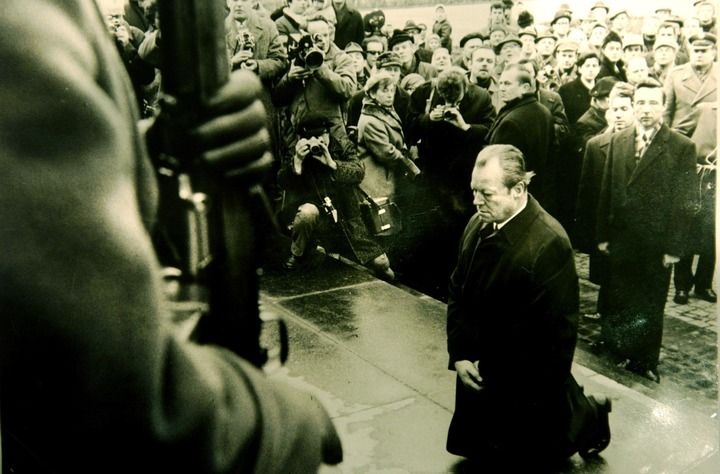1970年12月7日,聯邦德國總理勃蘭特在波蘭首都華沙猶太人殉難紀念碑前下跪。新華社發(fā)