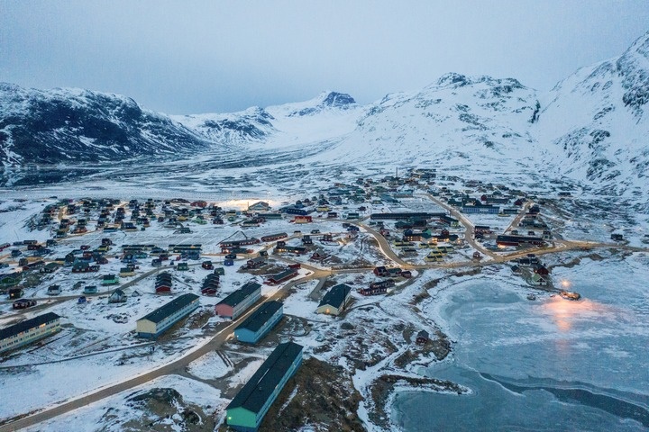 這是2025年3月21日拍攝的丹麥自治領(lǐng)地格陵蘭島納爾薩克鎮(zhèn)(無人機(jī)照片)。新華社記者彭子洋攝