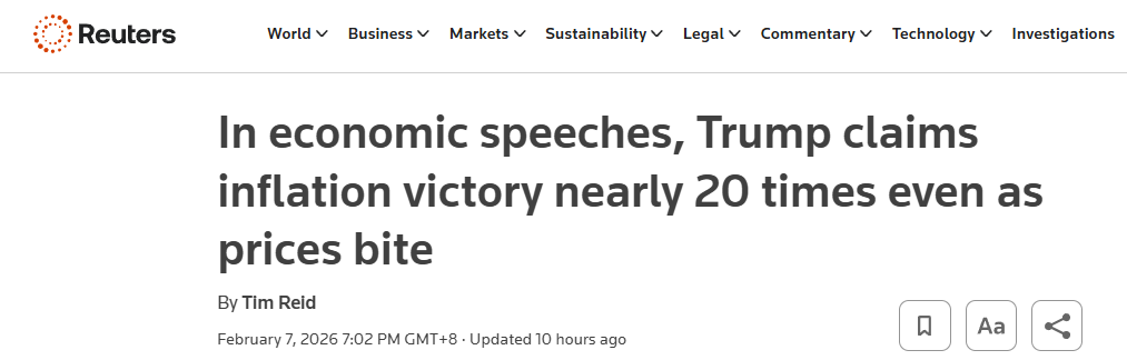 報(bào)道認(rèn)為,這些數(shù)據(jù)與美方“已解決生活成本危機(jī)”的表述形成反差。而相關(guān)言論將通脹問題描述為“已經(jīng)解決”,這一說法難以與民眾在超市等日常消費(fèi)場景中的體驗(yàn)相吻合。