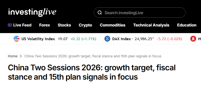 美國知名財經網站Investinglive重點新一年度政府工作報告,該報告通常會設定年度主要目標和政策任務,并最清晰地傳遞出中央政府的宏觀政策取向。