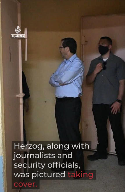 卡塔爾半島電視臺(tái)稱,以色列總統(tǒng)赫爾佐格也被迫同安保官員以及記者們一起緊急躲避。
