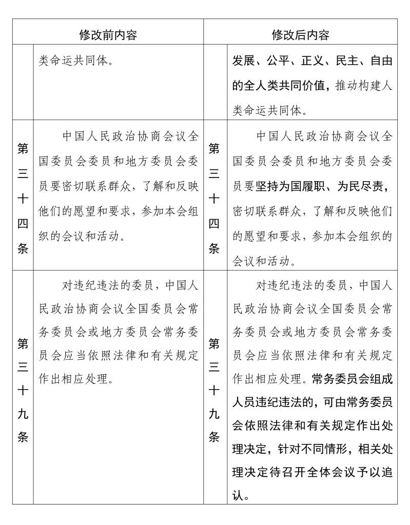中國(guó)人民政治協(xié)商會(huì)議章程 修改前后內(nèi)容對(duì)照表(4) 新華社發(fā)