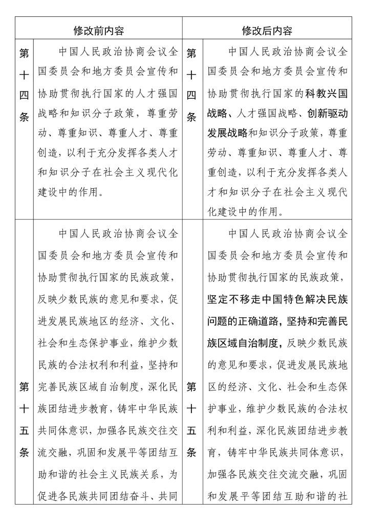 中國(guó)人民政治協(xié)商會(huì)議章程 修改前后內(nèi)容對(duì)照表(15) 新華社發(fā)