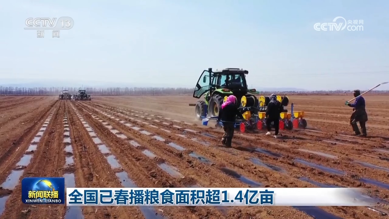 央視網(wǎng)消息(新聞聯(lián)播):農(nóng)業(yè)農(nóng)村部最新農(nóng)情調(diào)度顯示,截至目前,全國已春播糧食面積超1.4億畝,各地多措并舉,高質(zhì)量推進(jìn)春季農(nóng)業(yè)生產(chǎn)。