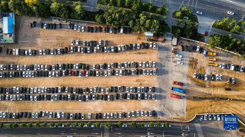 這是4月29日拍攝的淄博市臨淄區(qū)新建可容納1200輛車的臨時(shí)停車場(chǎng),該停車場(chǎng)供游客免費(fèi)停車(無人機(jī)照片)。