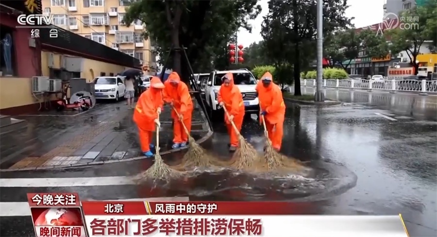 為應(yīng)對(duì)今年以來北京最強(qiáng)降雨天氣,在順義,巡查人員雨中對(duì)管養(yǎng)范圍內(nèi)積水點(diǎn)、路樹、橋梁等重點(diǎn)部位不間斷巡視;昌平公路分局在山區(qū)公路地質(zhì)災(zāi)害易發(fā)路段設(shè)置值守點(diǎn);懷柔區(qū)環(huán)衛(wèi)公司緊急成立防汛應(yīng)急小組,對(duì)道路積水開展人工推水作業(yè),撿拾雨箅子上的雜物和樹葉,方便市民出行。