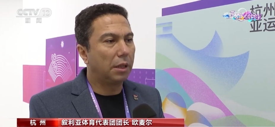 敘利亞運(yùn)動員 艾哈邁德·古松:今年已經(jīng)是我第三次來中國比賽了。當(dāng)我走在街上,我可以看到很多人向我問好,歡迎你來到這里。而且一旦我們需要幫助,很多人都來為我們提供幫助。來到這里就像回家一樣。而且哪里都是那么干凈美麗,場館也是我見過的最棒的場館,謝謝中國給亞洲帶來了一場如此精彩的亞運(yùn)會。