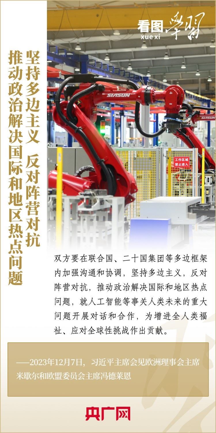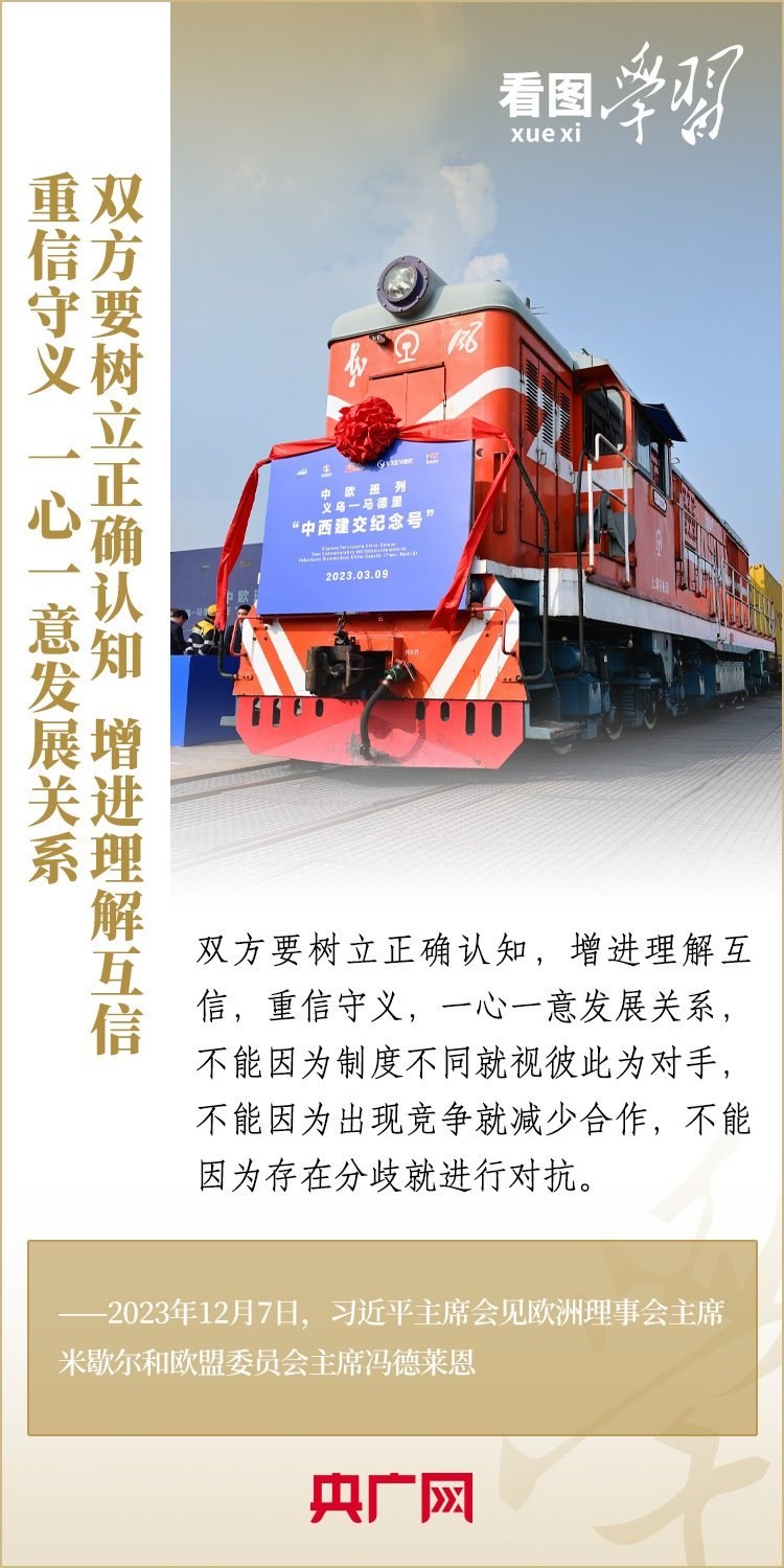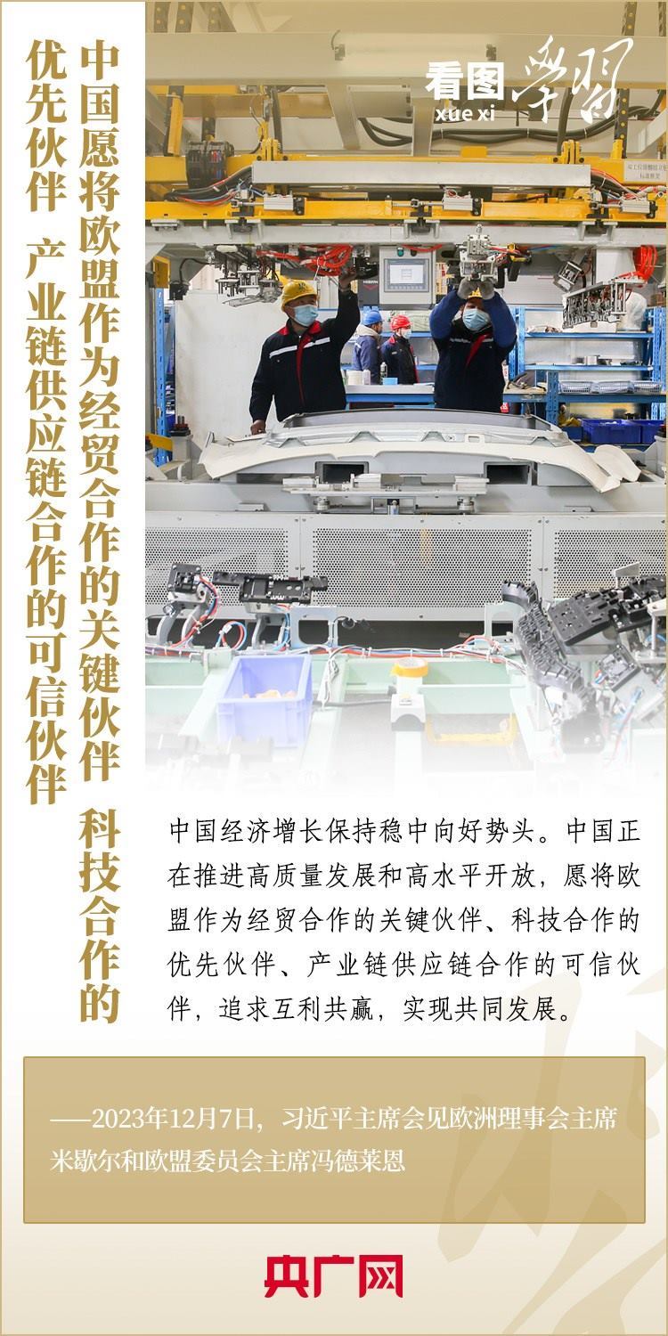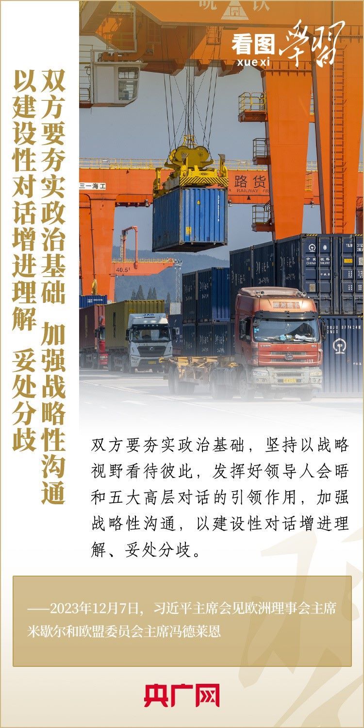 12月7日,國(guó)家主席習(xí)近平會(huì)見來(lái)華舉行第二十四次中國(guó)—?dú)W盟領(lǐng)導(dǎo)人會(huì)晤的歐洲理事會(huì)主席米歇爾和歐盟委員會(huì)主席馮德萊恩,雙方就事關(guān)中歐關(guān)系的戰(zhàn)略性問題,以及中歐各領(lǐng)域?qū)υ捄献?、雙方重點(diǎn)關(guān)切、全球治理、國(guó)際和地區(qū)熱點(diǎn)問題等深入坦誠(chéng)交換看法,并就一系列問題達(dá)成重要共識(shí)。今年是中歐建立全面戰(zhàn)略伙伴關(guān)系20周年,習(xí)主席強(qiáng)調(diào),中歐關(guān)系具有戰(zhàn)略意義和世界影響,關(guān)乎世界和平、穩(wěn)定、繁榮。一起來(lái)學(xué)習(xí)!