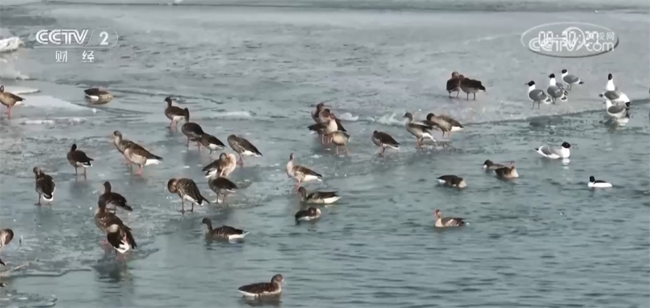 三月份以來,寧夏青銅峽庫區(qū)濕地自然保護區(qū)陸續(xù)迎來了北遷的候鳥,畫面中,三只大天鵝在水中暢游,隨后輕輕踏上冰面。這時一群豆雁也慢慢游向大天鵝,大天鵝與豆雁“共舞”,構(gòu)成了一幅充滿活力的生態(tài)畫卷。預計到三月中旬,青銅峽庫區(qū)濕地保護區(qū)將迎來候鳥遷徙的高峰期。