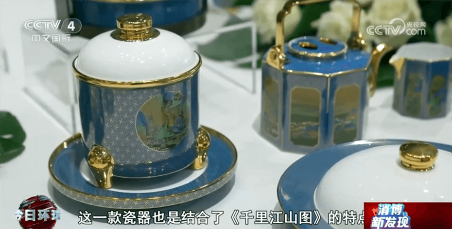 江西省景德鎮(zhèn)市商務局工作人員章少聰介紹稱:“這一幅畫是北宋王希孟先生創(chuàng)作的,叫作《千里江山圖》。這一款瓷器也是結合了《千里江山圖》的特點,把中國傳統(tǒng)畫中的山水、花鳥都完全在瓷器上面展現(xiàn)出來?!?/p>
