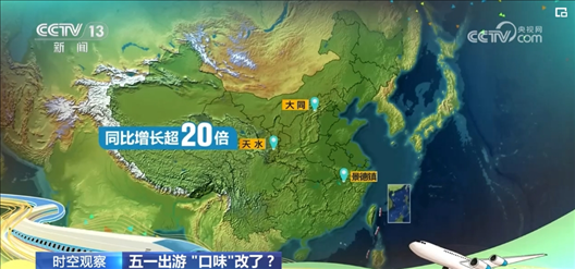大家都去哪兒了?通過分析平臺上335個目的地的同比增幅數(shù)據(jù)后,找到了2024年“五一”最受歡迎的小眾旅游目的地。在這張熱力圖上,標(biāo)注的是增幅前20的小眾目的地城市,圓圈大小表示增幅的高低,排名第一的廣西河池的酒店和票務(wù)預(yù)訂同比增長近四倍,而分布在10個不同省份的這20個城市,同比增幅都在一倍以上。