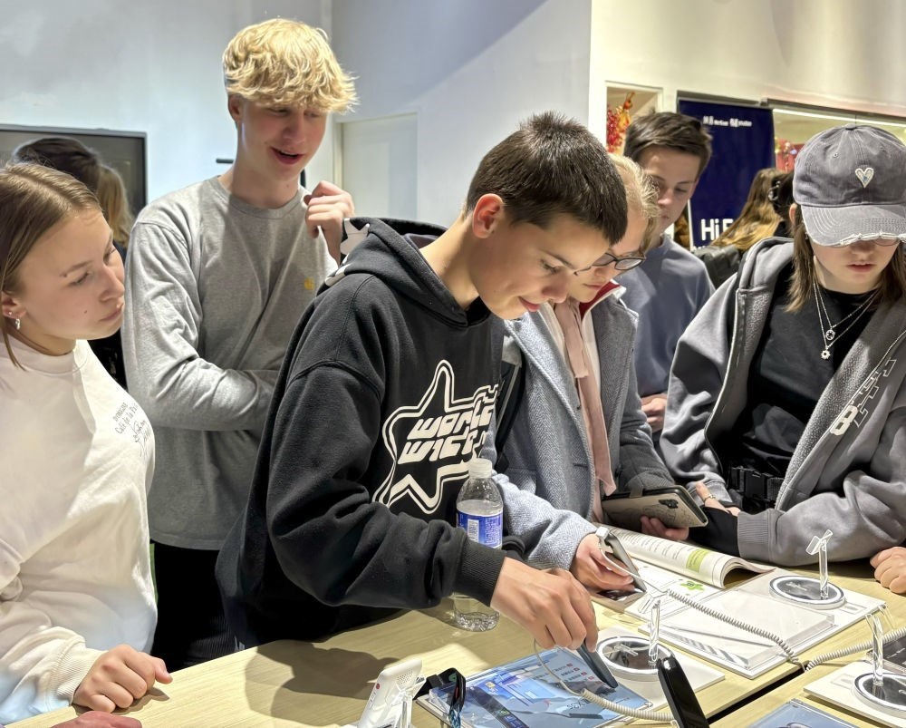 2024年4月9日,中德兩國(guó)中學(xué)生在位于北京中關(guān)村軟件園一家企業(yè)參觀。新華社記者 趙旭 攝