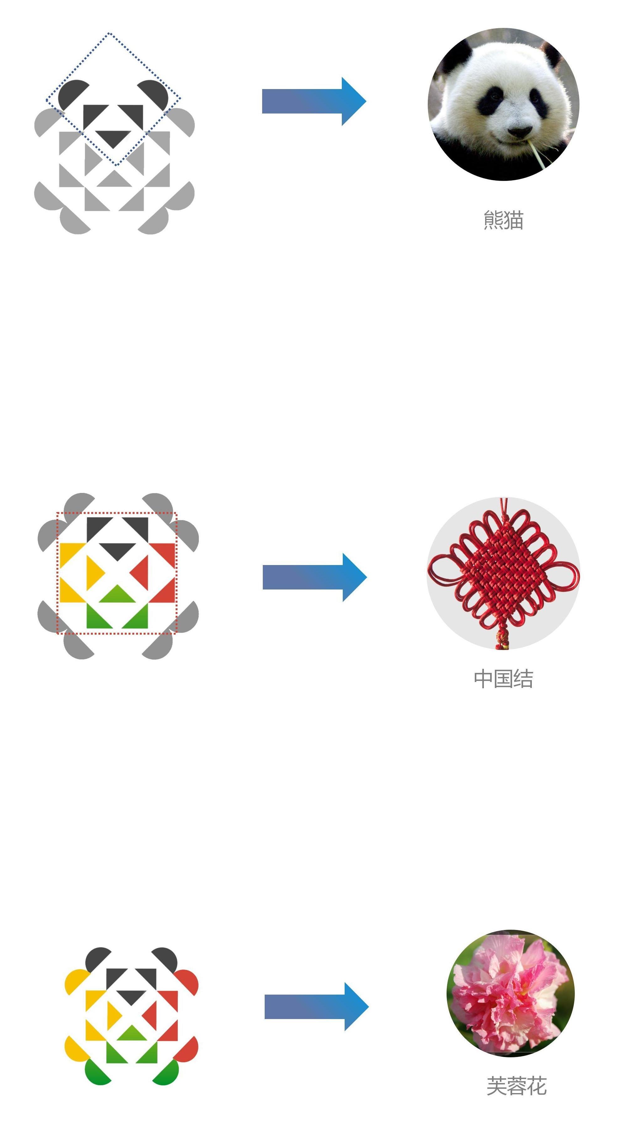 會(huì)徽設(shè)計(jì)靈感源于中國(guó)的大熊貓、芙蓉花和中國(guó)結(jié),以中國(guó)紅、金沙黃、公園綠、熊貓黑、雪山白為主色調(diào)。作為 2025 年成都世界運(yùn)動(dòng)會(huì)的重要標(biāo)志,這一會(huì)徽有效傳達(dá)了奧林匹克精神又凸顯了中國(guó)傳統(tǒng)元素和成都特色,彰顯了“團(tuán)結(jié)、包容、多樣性”的價(jià)值觀。同時(shí),設(shè)計(jì)師秉承色彩明快、造型簡(jiǎn)潔的設(shè)計(jì)理念,其外圍的半圓圖案和內(nèi)部排列的三角形,圍成一朵盛開的芙蓉花;紅、黑、黃、綠、白的幾何色塊拼出可愛的卡通大熊貓。