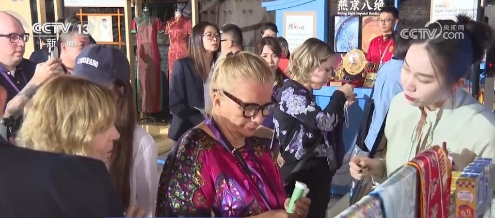 5月24日,北京入境旅游發(fā)展大會開幕式在首鋼園舉辦,來自全球的百名旅行商代表前來參展,中外旅游企業(yè)進行點對點洽談?,F(xiàn)場搭建了非遺展區(qū),京式旗袍傳統(tǒng)制作技藝等特色非遺項目吸引外國旅行商互動體驗,不少人還現(xiàn)場選購絲綢、茶葉等商品。