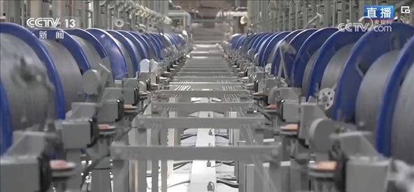 相對(duì)普通鋼簾線來(lái)說(shuō),這樣的鋼絲組成的鋼簾線強(qiáng)度更高,可以減少輪胎里面橡膠原料的使用,減輕輪胎整體的重量。這里的工作人員介紹,在鋼簾線制造過(guò)程中,工藝流程自動(dòng)化程度低一直是行業(yè)“痛點(diǎn)”?,F(xiàn)在,企業(yè)通過(guò)人工智能、數(shù)字化,實(shí)現(xiàn)了從原材料進(jìn)廠到成品出庫(kù)全流程的自動(dòng)化生產(chǎn)。