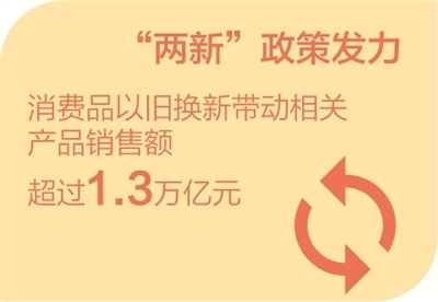 商務部新聞發(fā)言人何詠前:中央經(jīng)濟工作會議提出,大力提振消費。初步統(tǒng)計,2024年,全國汽車以舊換新超過680萬輛,超3600萬名消費者購買8大類家電以舊換新產(chǎn)品超過5600萬臺,家裝廚衛(wèi)“煥新”補貼產(chǎn)品約6000萬件,電動自行車以舊換新超過138萬輛。消費品以舊換新帶動相關(guān)產(chǎn)品銷售額超過1.3萬億元。
