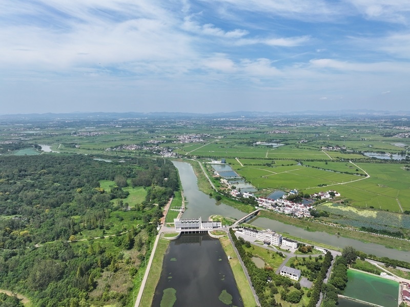 9月15日拍攝的江蘇句容赤山湖灌溉工程灌區(qū)(無人機(jī)全景照片)。
