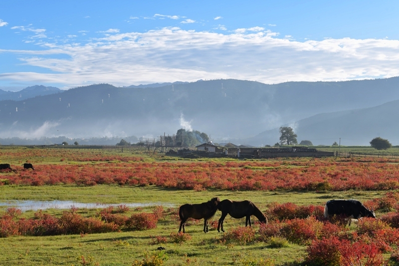 9月13日拍攝的云南省香格里拉市小中甸鎮(zhèn)和平村秋景。