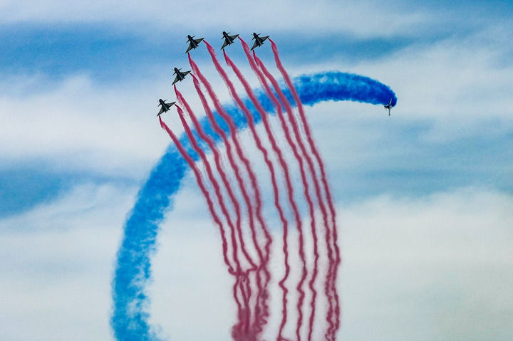 ↑9月19日,空軍八一飛行表演隊(duì)進(jìn)行飛行表演。新華社記者 顏麟蘊(yùn) 攝