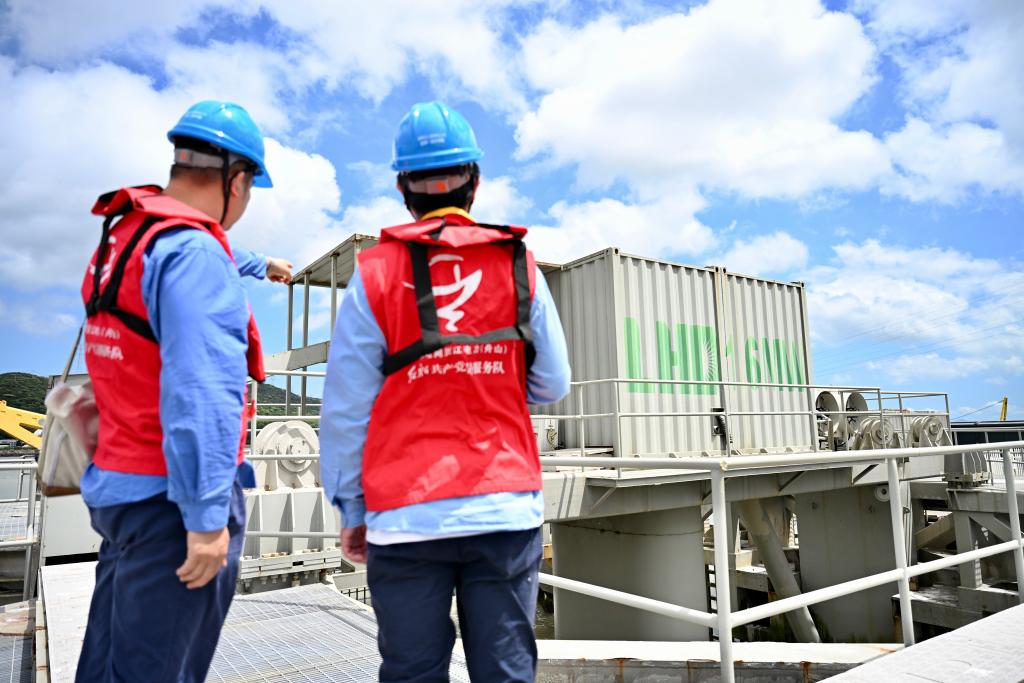 圖為國(guó)網(wǎng)舟山供電公司工作人員為浙江LHD海洋潮流能發(fā)電工程開(kāi)展日常巡檢工作。新華社記者劉銘翔 攝