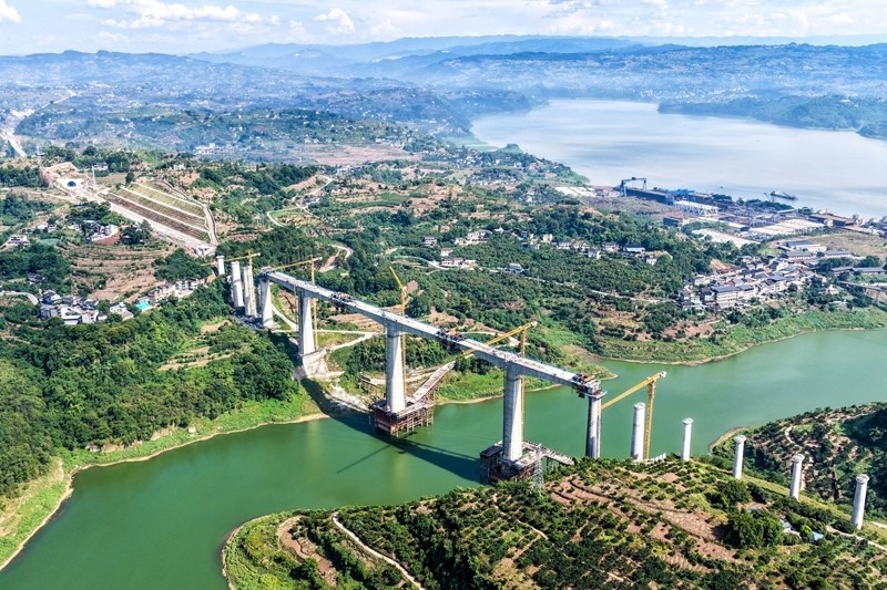 當(dāng)日,由中國鐵建大橋局承建的重慶至萬州高速鐵路(渝萬高鐵)渠溪河雙線特大橋順利合龍。渝萬高鐵渠溪河雙線特大橋位于重慶市涪陵區(qū)珍溪鎮(zhèn),橫跨長(zhǎng)江支流渠溪河,全長(zhǎng)約953米,是全線重難點(diǎn)工程。