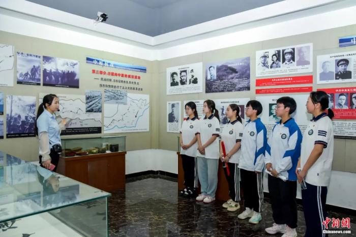 學(xué)生在漯河中州抗戰(zhàn)紀(jì)念館聆聽(tīng)抗戰(zhàn)史。程耀旗 攝