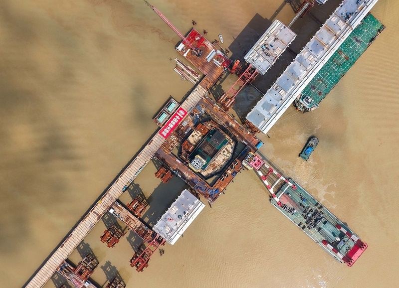 10月10日,由中鐵建大橋局承建的萬龍大橋吊裝架設(shè)首節(jié)段主塔。位于廣州南沙區(qū)的萬龍大橋跨越珠江口龍穴南水道,全長5146米,主橋長1150米,主跨608米,為粵港澳大灣區(qū)又一世界級橋梁。