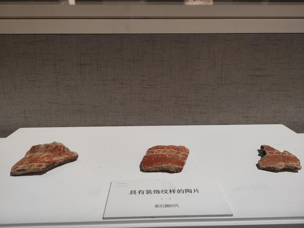 圖為黃山上遺址出土的跨湖橋文化時(shí)期的陶片。新華社記者 馮源 攝