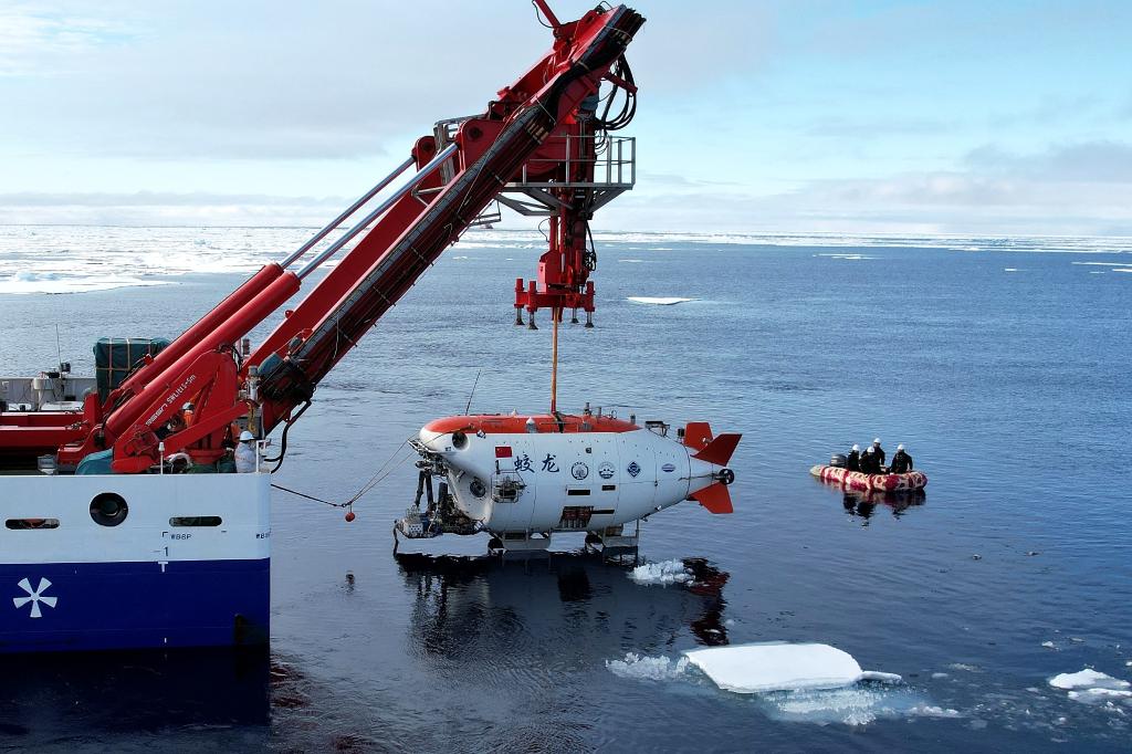 搭載著“奮斗者”號載人深潛科考隊的“探索三號”于今年7月22日從三亞出發(fā),會同“蛟龍”號載人深潛團隊赴北冰洋海域執(zhí)行深潛任務(wù)。其間,科考隊在北冰洋作業(yè)56天,進行了一系列科學(xué)考察和試驗。在海冰覆蓋率大于80%的北冰洋中央海盆,科考隊進行了國際上首次加克洋中脊的載人深潛科考,最大下潛深度達5277米。