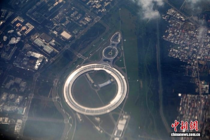 2025年8月30日,客機(jī)飛過北京懷柔科學(xué)城時(shí),航拍高能同步輻射光源(HEPS)大科學(xué)裝置。中新網(wǎng)記者 孫自法 攝