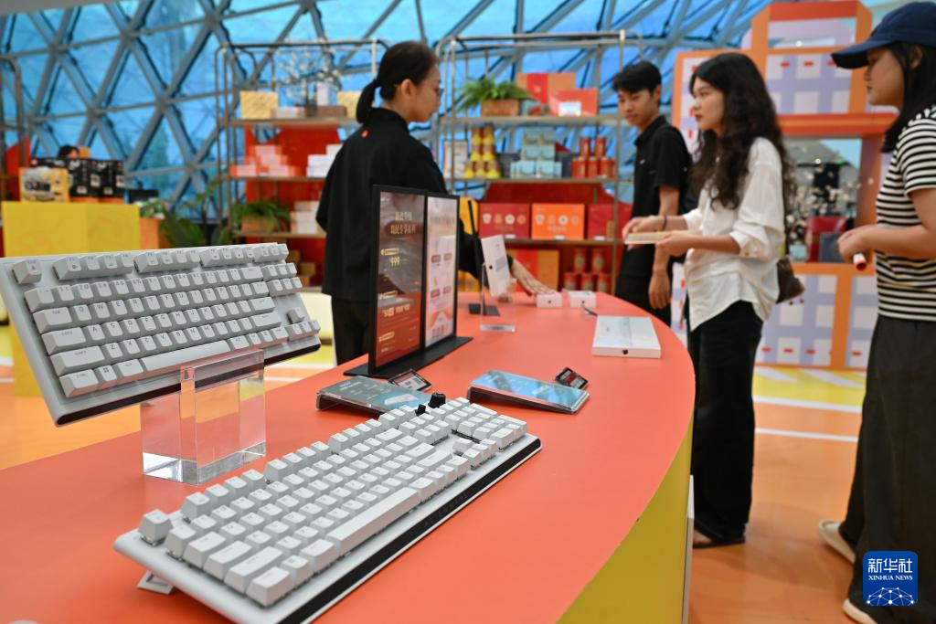 11月9日,顧客在三亞國(guó)際免稅城選購(gòu)國(guó)內(nèi)商品。這是新增免稅品類。