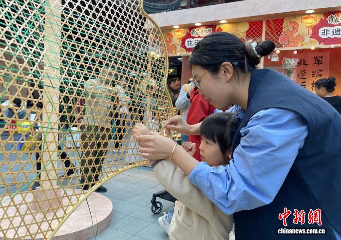 11月14日,2025豫園非遺季在上海豫園商城開幕。圖為小朋友體驗(yàn)竹編。中新社記者 鄭瑩瑩 攝