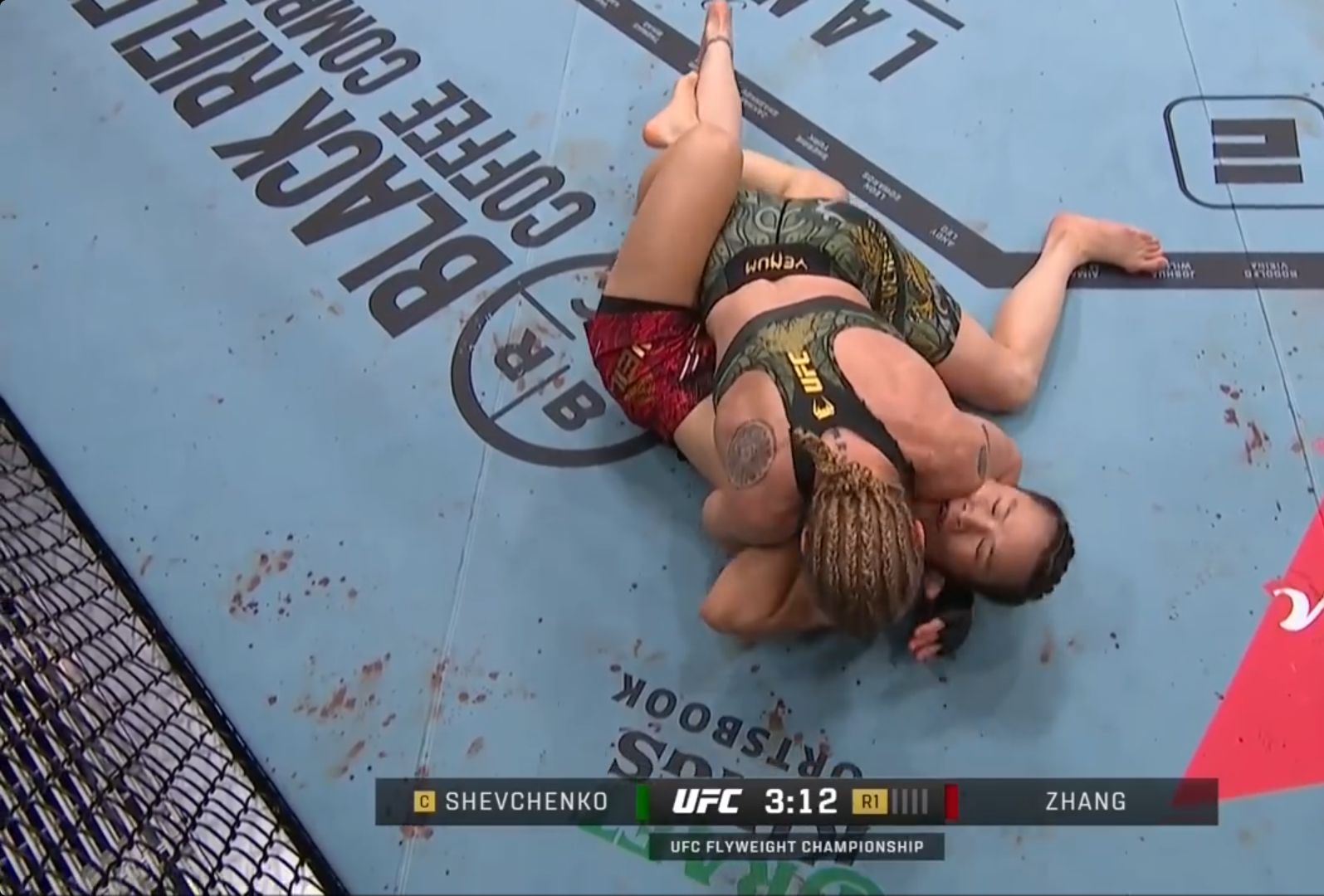 比賽中,兩人長(zhǎng)時(shí)間在地面上纏斗,而舍甫琴科是明顯占優(yōu)的一方。