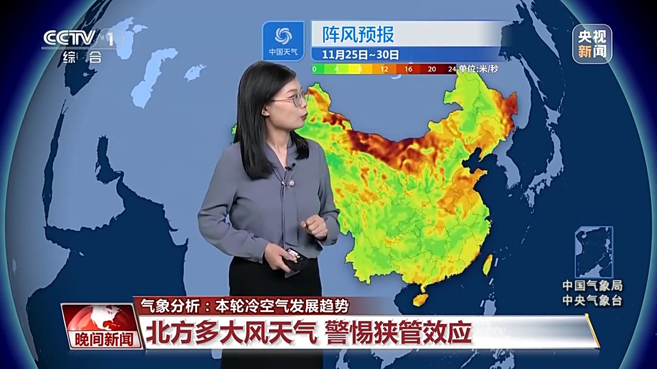 冷空氣帶來的大風(fēng)比較頻繁,尤其是25日、26日以及29日前后,從西北到華北黃淮會(huì)陸續(xù)刮起5至7級(jí)的風(fēng),陣風(fēng)可以達(dá)到8到9級(jí),尤其是會(huì)出現(xiàn)狹管效應(yīng)的區(qū)域,風(fēng)力會(huì)更大。