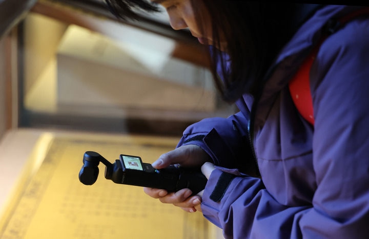 11月28日,在遼寧大連旅順博物館,媒體工作者拍攝展出的“明諭琉球國(guó)王敕”(仿制品)。新華社記者 李鋼 攝