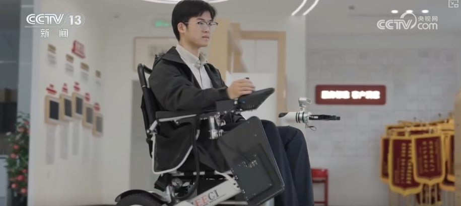 在杭州西湖區(qū),工作人員正在對(duì)眼前這款智能輪椅進(jìn)行技術(shù)升級(jí)。結(jié)合失能老人手腳行動(dòng)不便的痛點(diǎn),這款輪椅搭載了深度相機(jī)和智能機(jī)械臂,通過(guò)內(nèi)置的AI算法,使用者只需和平常一樣坐在上面,簡(jiǎn)單用語(yǔ)言表達(dá)需求,輪椅就可以判斷路線,智能移動(dòng)。