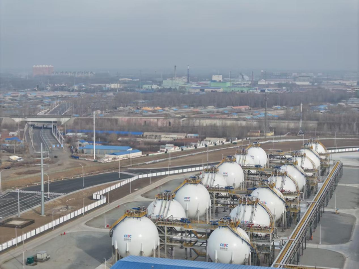 圖為中能建松原氫能產(chǎn)業(yè)園項(xiàng)目的氫儲(chǔ)罐。新華每日電訊記者 姚湜攝
