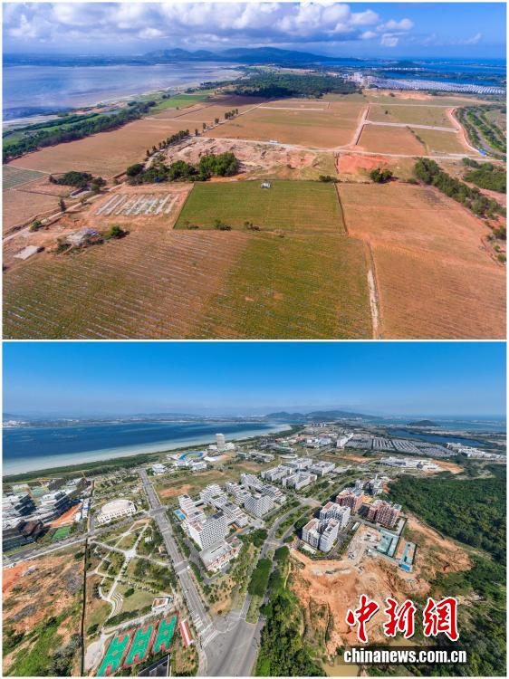 2025年12月18日,海南自由貿易港正式啟動全島封關。近年來,海南自貿港建設在利好政策帶動下不斷刷新“自貿港速度”,一個個重大項目、重點園區(qū)拔地而起,直觀呈現(xiàn)海南自貿港的蓬勃生機。這里正成為中國對外開放的新前沿、互利合作的新熱土和推動經(jīng)濟全球化的新引擎。上資料圖為2020年8月19日俯瞰三亞崖州灣科技城高新區(qū)建設現(xiàn)場,下資料圖為2025年12月9日已初具規(guī)模的三亞崖州灣科技城高新區(qū)。(拼版圖,無人機照片)