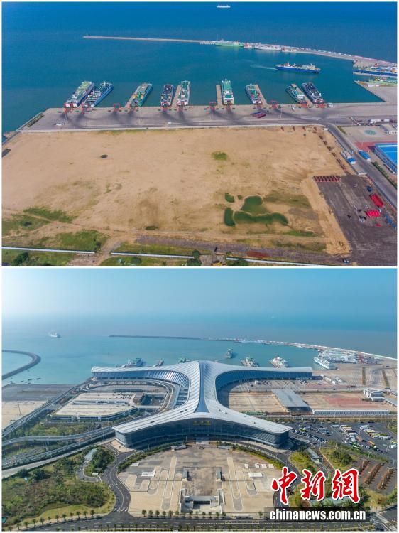 2025年12月18日,海南自由貿易港正式啟動全島封關。近年來,海南自貿港建設在利好政策帶動下不斷刷新“自貿港速度”,一個個重大項目、重點園區(qū)拔地而起,直觀呈現(xiàn)海南自貿港的蓬勃生機。這里正成為中國對外開放的新前沿、互利合作的新熱土和推動經(jīng)濟全球化的新引擎。上資料圖為2018年9月29日的??谛潞L裝碼頭客運綜合樞紐站項目建設地塊,下資料圖為2025年12月5日已投入使用的海口新海滾裝碼頭客運綜合樞紐站。(拼版圖,無人機照片)